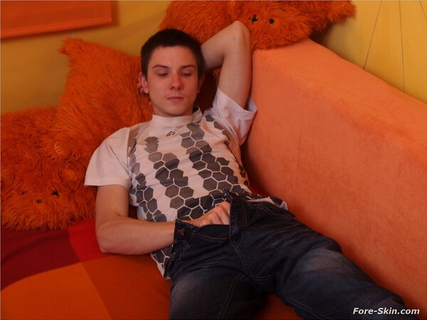 Eryk plays with his uncut cock